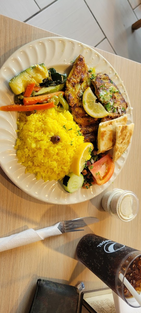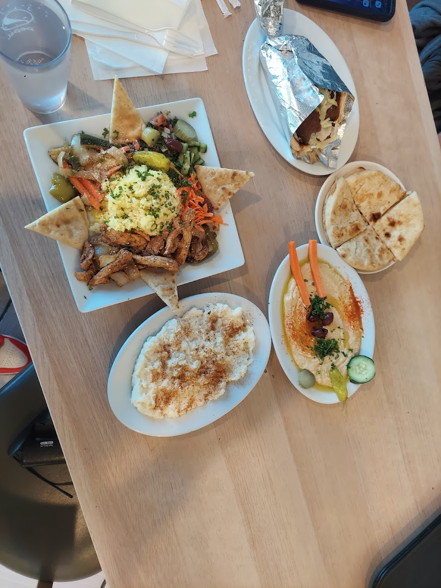 I ordered the large Chicken Shawarma and rice bowl. I gotta say it was really really good and the garlic sauce was amazing. Would highly suggest if you're in the area.